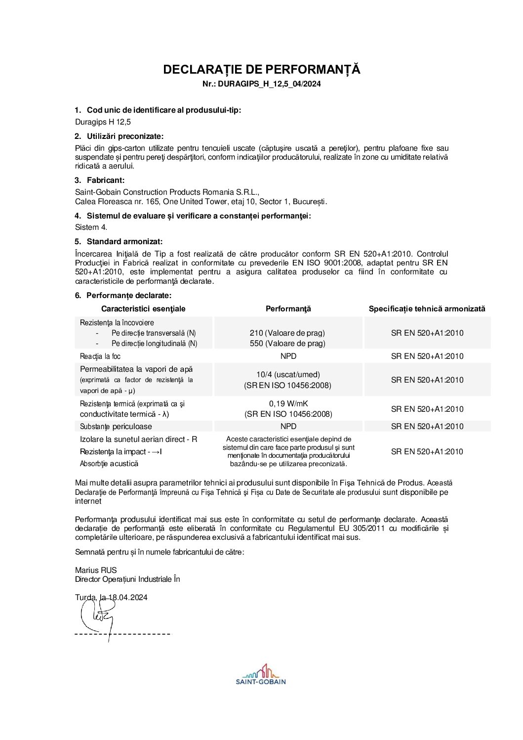 – Grosime: 12.5mm.