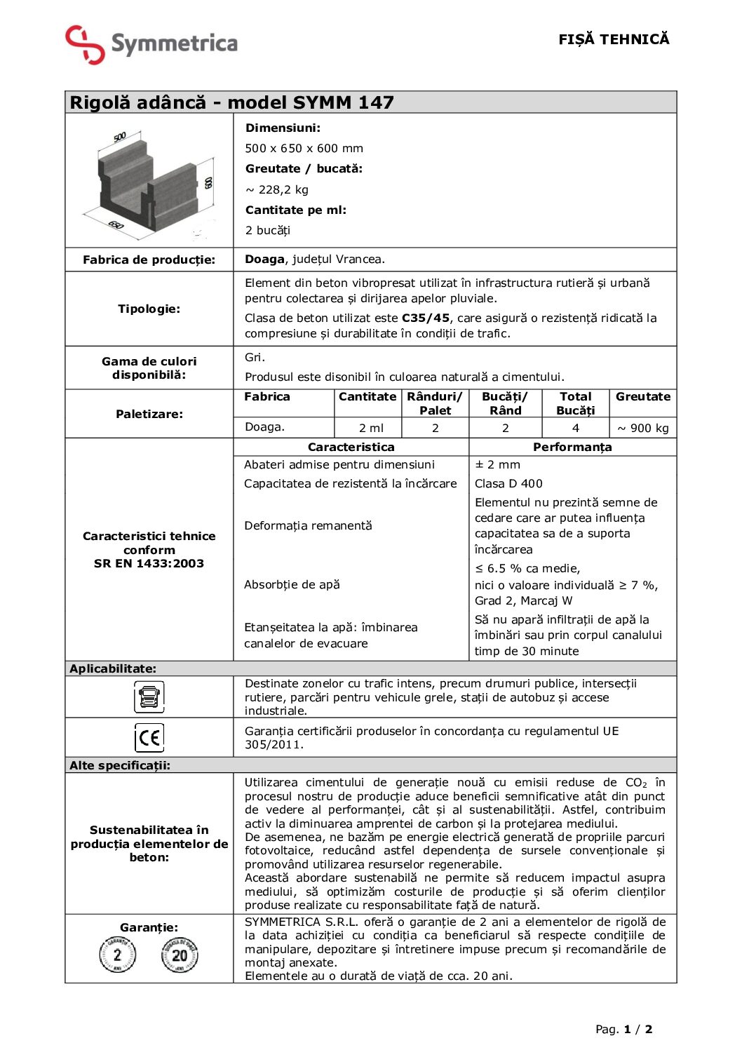 – Cantitate (bucati / palet): 4 bucati / palet.